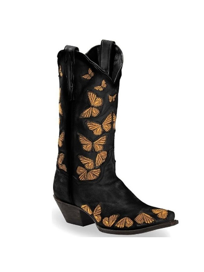 Vintage Chunky Heel Embroidered Butterfly Tall Women's Boots